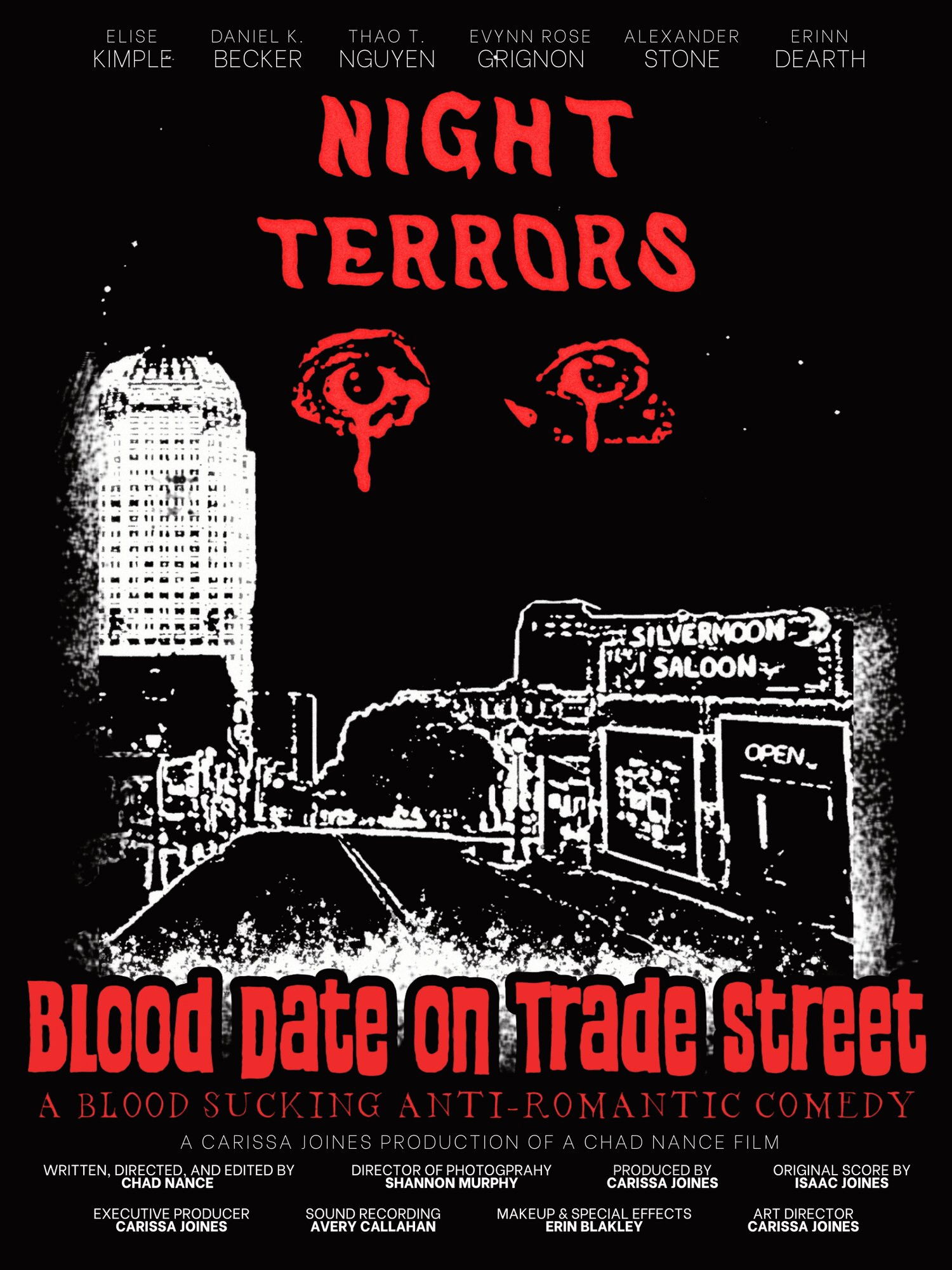 Local radio host Bob Campbell will introduce the screenings. Director Chad Nance, Producer Carissa Joines, and selected cast and crew will be present. A blood sucking anti-romantic comedy filmed in Winston-Salem! A jaded comedian and a desperate actress host a live late-night comedy horror show featuring “Blood Date on Trade Street” the story of a true-crime obsessed girl, a vampire, and the blind date that brings them together for a night of romance, suspense, and terror.